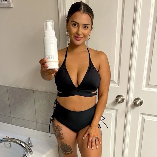 "Get Into The Limelight's Dark self-tanning mousse has been my go-to for 4 years now! It's so easy to apply and it gives my skin an even-glowing bronze. The formula is streak-free and my white sheets stay white!"